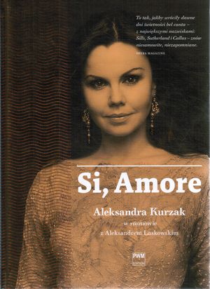 Aleksandra Kurzak ─ znakomita polska sopranistka podbijająca swoim talentem największe sceny operowe świata: La Scala, Metropolitan Opera, Covent Garden, Teatro Real... W wielowątkowej rozmowie z Aleksandrem Laskowskim pt. "Si, Amore" dzieli się z nami swoim pełnym pasji światem: opowiada o życiu na walizkach (Wiedeń, Londyn, Wrocław, Nowy Jork...), o życiu na scenie (Rigoletto, Traviata, Córka pułku, Czarodziejski flet...), o życiu prywatnym (rodzice, dzieciństwo, przesądy, upodobania...), wreszcie o miłości i o dziecku. Czytając o tym, jak świat się zmienia, a razem z nim zmienia się i opera, o trudnych wyborach zawodowych i o sukcesach artystycznych, o stanie błogosławionym i macierzyństwie, znajdujemy się tam, gdzie teatr przeplata się z rzeczywistością, a wszystkim rządzi miłość![empik].